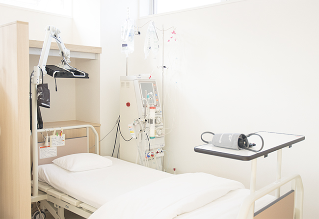 維持透析を必要とする患者様に対して、長年地域に根付いた相談しやすいアットホームな環境の中で専門的医療を安心して提供することを目指しています。