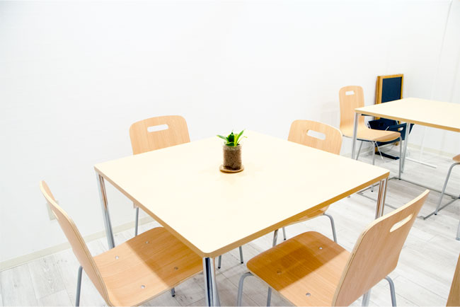 4人掛けのテーブル席もございますので、ご家族の方との面談スペースとしてもご利用いただけます。